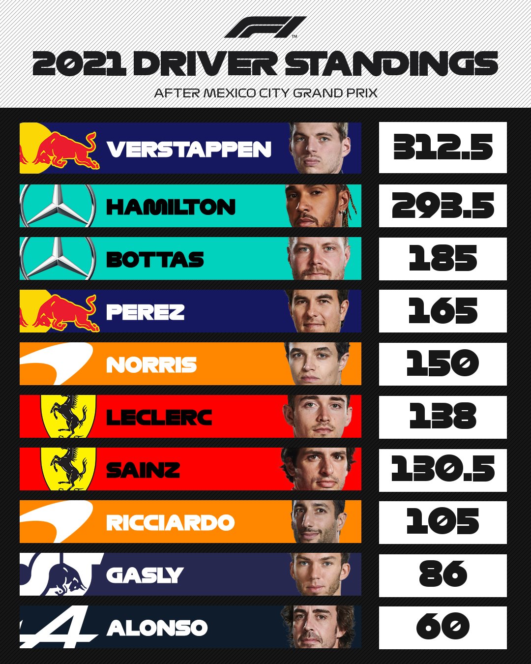 그나저나 멕시코 GP 결과로 컨스트럭터스 챔피언십 3-4위 뒤집힌 것도 맥라렌 좋아하는 입장에서 좀 쓰라린데, 5-6위 경쟁 중인 알핀과 알파타우리는 무려 동점(!)을 기록하는 등 다른 팀들도 경쟁 치열합니다. 헝가로링 우승이 있어서 동점이라도 순위는 알핀이 위군요.