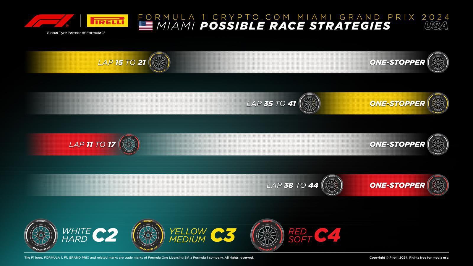레이스 전 타이어 잔여분 고려하면 아예 새것들로 M-H나 H-M 전략 두 드라이버 다 가능한 집들은 그리드 앞쪽에선 RBR 페라리 맥라렌이 있었습니다. 그런데 노리스한테 새 소프트 한 세트가 있다?! 그럼 더 미친 전략도 고려해볼 수 있었을지도요... 한편, 새것 모자라서 중고들을 써야 되는데 그래서 그게 얼마나 쓴 중고인지가 문제일 집들이 이제 아스톤 마틴하고 메르세데스. 아스톤 마틴은 둘 다 새 하드 없이 중고로만 한 세트씩 있음(대신 또 소프트가 새것으로 있다;). 메르세데스에는 새 미디움과 소프트가 없고 하드는 아예 새것으로 두 세트씩. 작년을 참고하기에도 또 헷갈리는 게 이 마이애미 2024 주말 전반 타이어 닳는 정도나 관리 정도나 레이스 전까지 영 가늠이 안 되었기 때문입니다 아무리 스프린트 낀 주말이어도 그렇지?? 보면 알게 되기야 하겠지만 짐작은 참 어렵네요. 소나기가 됐든 다른 무엇이 되었든 굉장한 변수가 발생하지 않는 한 또 앞쪽은 빤하고 중위권이 카오스한 최근 흐름대로 갈 것 같다- 는 생각을 하면서 맞이한 레이스는, 글쎄요, 역시 그랑프리 주말엔 무슨 일이든 일어날 수 있나봅니다.